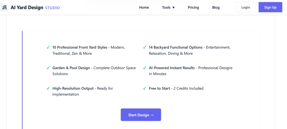AI Yard Design Studio is a professional AI-powered landscape design platform that provides users with expert-driven tools to create stunning landscape designs for residential yards and large-scale projects.