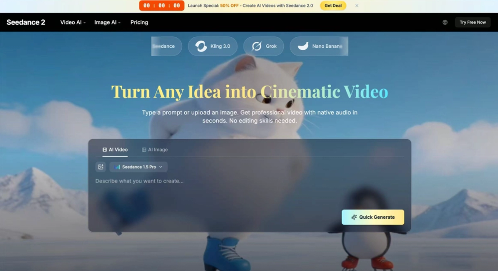 Create cinematic AI videos instantly with Seedance 2.0 — from text, images, or audio. No editing skills needed.