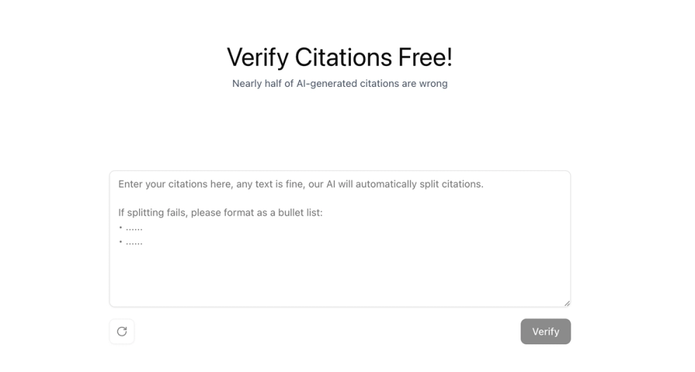 CiteTrue is an AI-powered citation verification tool that helps researchers and students ensure their citations are authentic and accurate.