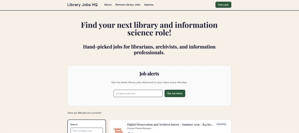 Library Jobs HQ is the premier destination to find your next library and information science role! Hand-picked jobs for librarians, archivists, and information professionals. We add fresh listings everyday and jobs are updated daily.