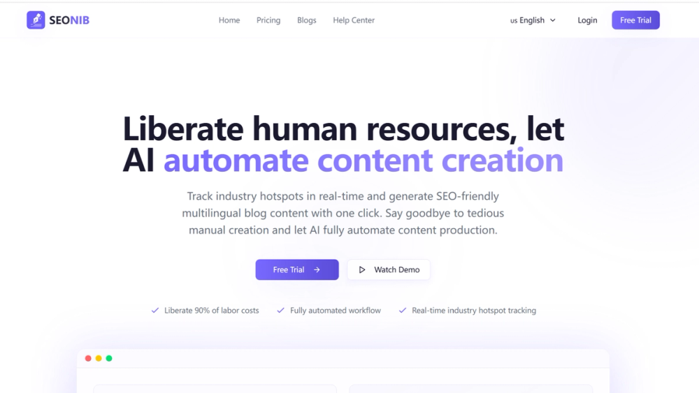 Value Proposition: SEONIB significantly reduces labor costs and content production time, enabling teams to focus on strategy over manual writing. Its automated workflows and data-driven trend insights aim to improve SEO performance while scaling content output efficiently.