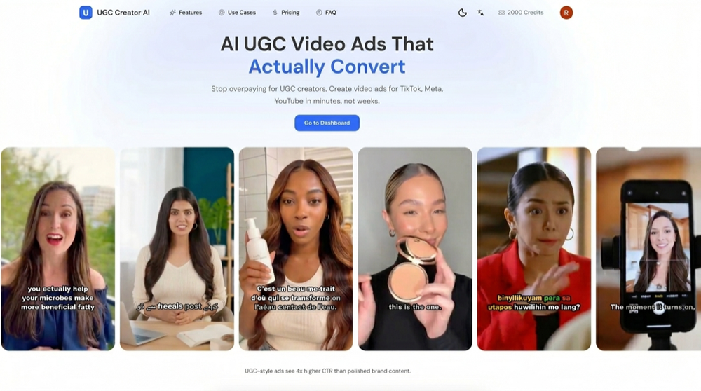 Stop overpaying for UGC creators. Create video ads for TikTok, Meta, YouTube in minutes, not weeks.Meet Your 24/7 UGC Creative Team Our AI avatars look and sound like real creators—trained on thousands of hours of top-performing social content. Just pick an avatar, add your product, and ship winning ads.